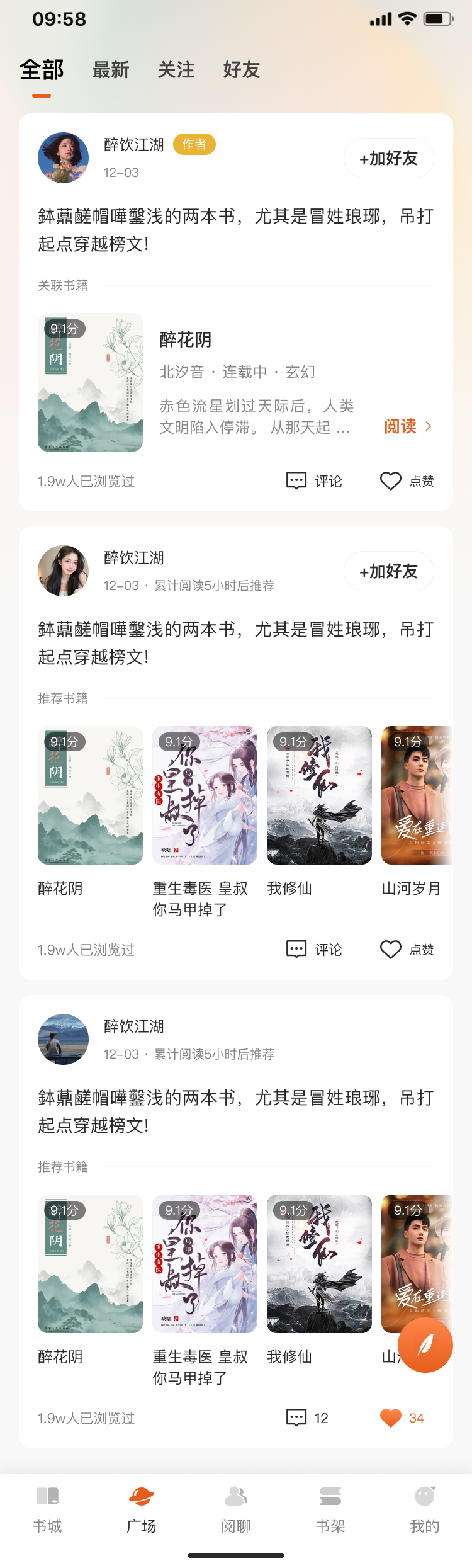 1.普通用户:分为现代言情、都市玄幻、古代言情等阅读文章是可设置字体大小、颜色、背景更换、翻页方式(平滑,上下等)调节屏幕亮度黑夜模式白天模式对标番茄小说,小说章节查看分为试看充值书币阅读看书时进行扣取。二级分销用户进行在线提现可进行添加好友在线聊天(发送表情,图片,赠送书币)可设置自动回复以及在线抽奖。可查看作者个人资料进行好友添加,关注,拉黑等操作,同时查看广场进行书籍推广发表评论。2.作者:用户申请成为作者可查看自己的粉丝量、获赞量、我的收益:获得的书币、作品的收益、推广的收益且能在线提现。针对自己上传的作品进行管理以及更新章节以及发布动态并且关联自己相关的作品。3.APP内置清除缓存,版本升级、添加个人的签名以及账号注销