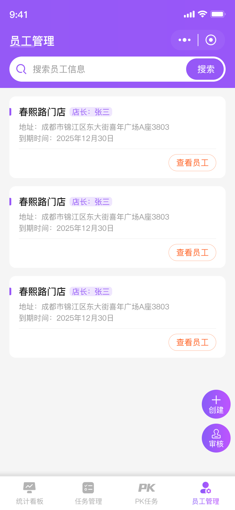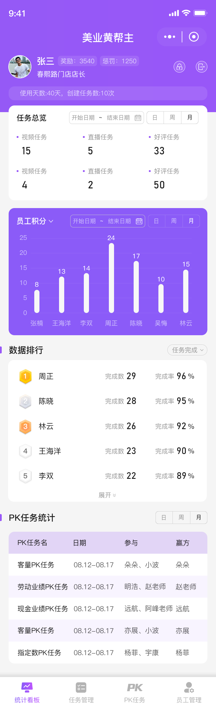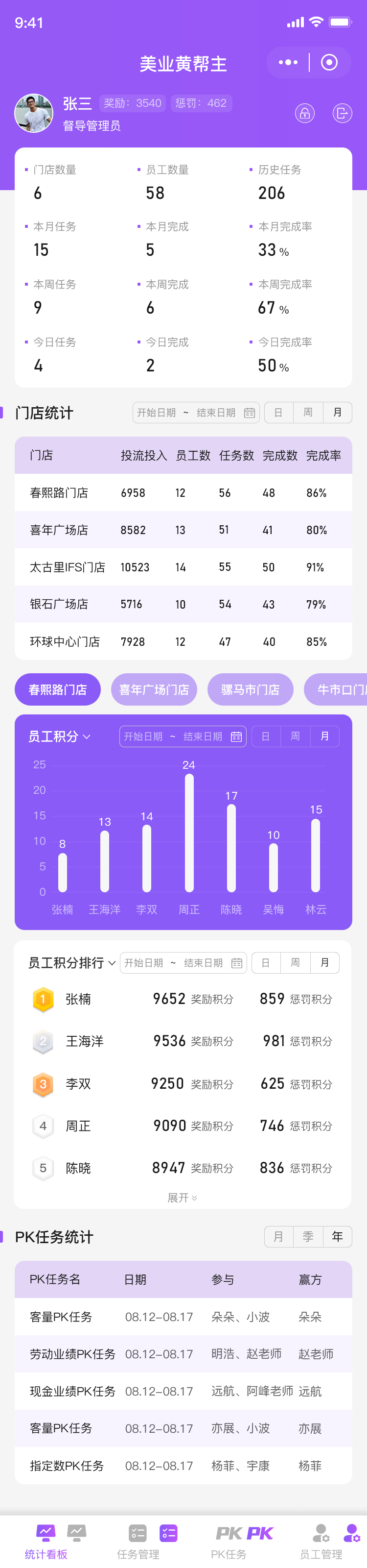 督导端,店长端,员工端