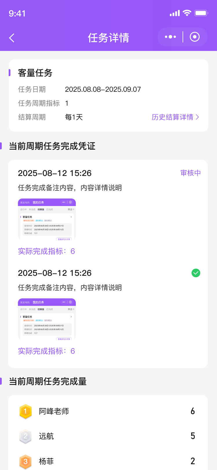 3.员工端接收到任务进行完成并执行,看到任务完整度任务量以及获得的积分明细,线上积分无实质的使用做为线下的交易抵扣