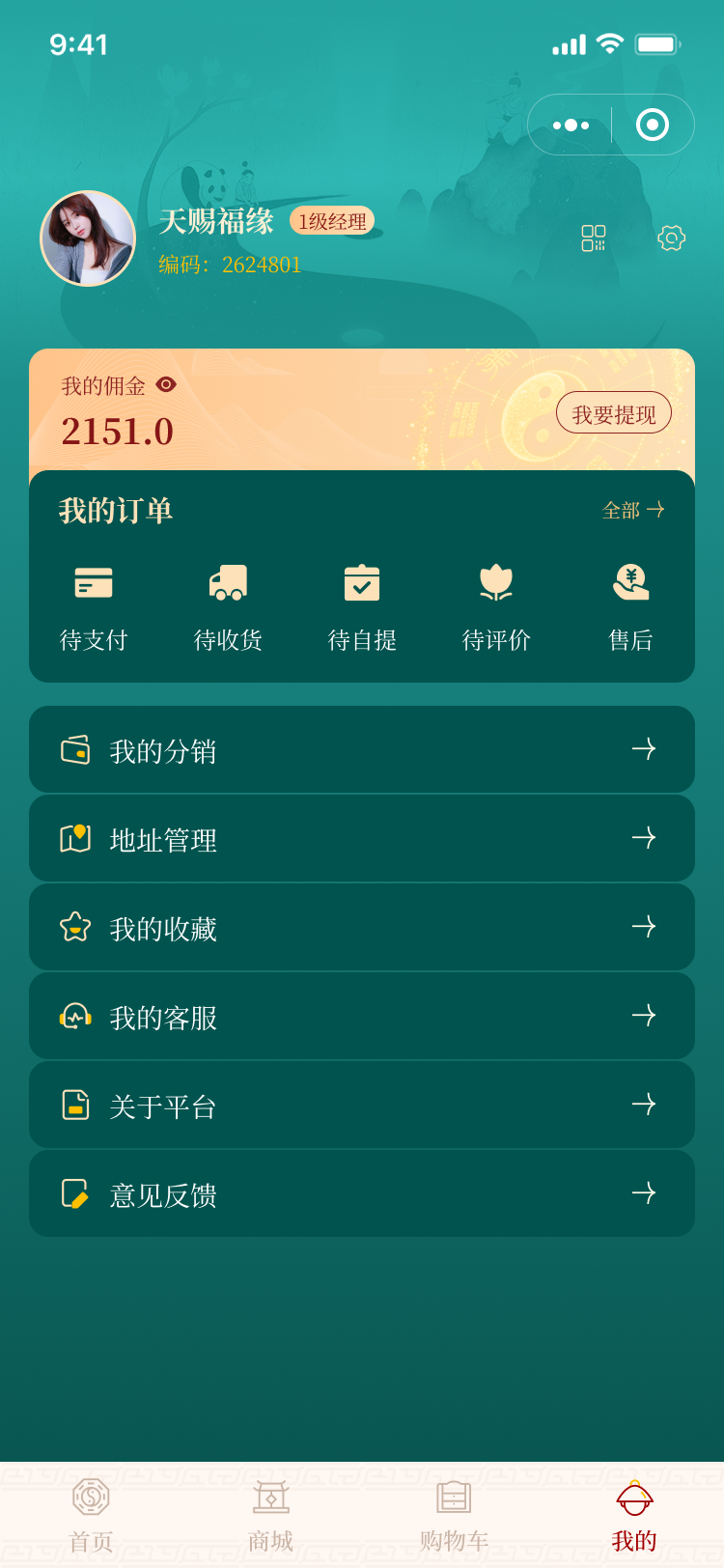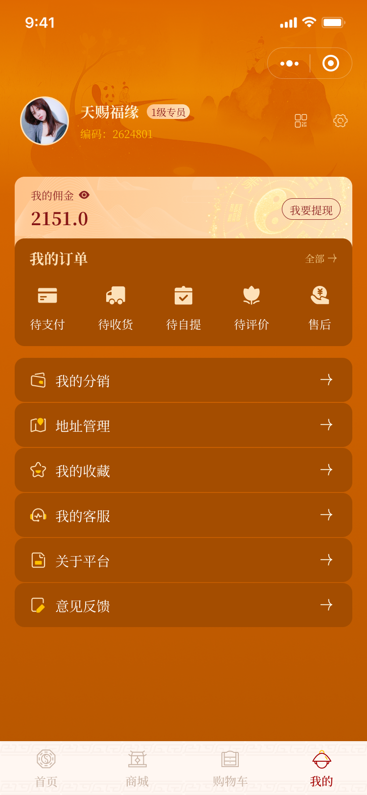 普通商城二级分销,身份分为专员,经理,总监达到一定级别获得对应的总业绩提成且不同身份小程序会员颜色不一样突显高级感。对接快递100,售后退款